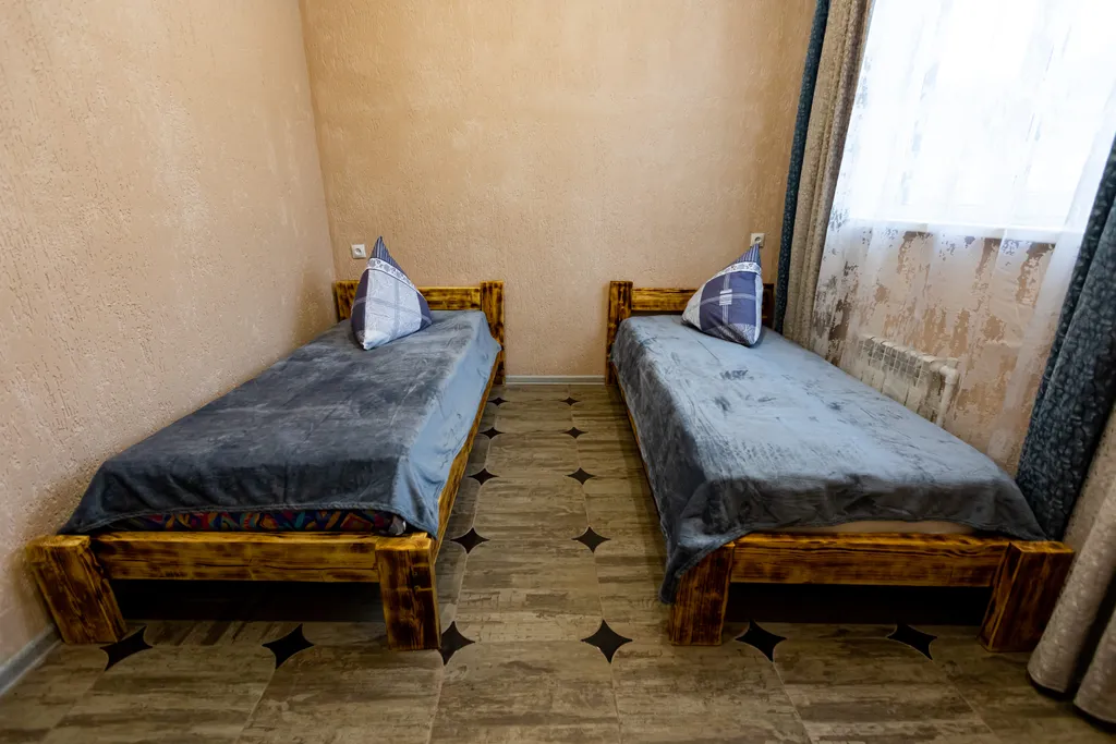 3 комната №2: две односпальные кровати, ортоп. матрасы, чистое постельное бельё, стол, вешалка.