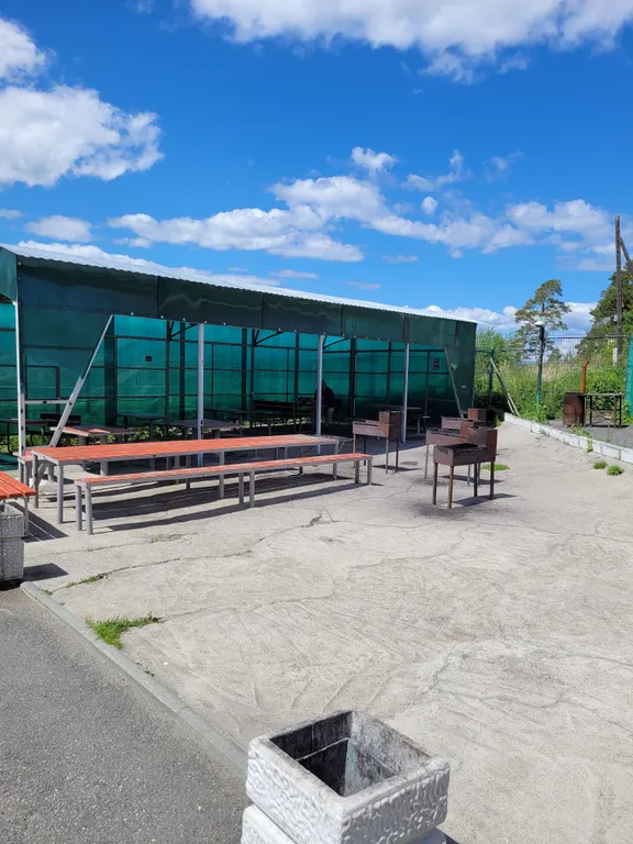 Есть мангальная зона у дома бесплатно. Парковка авто 150руб сутки.