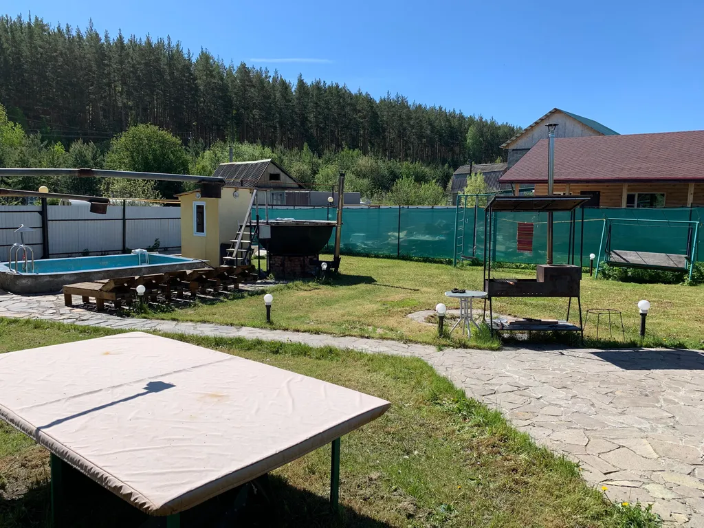 На территории имеется мангальная зона (входит в стоимость аренды), без шампуров и барбекю решётки, казана. Беседка 12 м х 4 м; столы 3 м х 600 мм — 2 шт. + лавочки 3 м х 400 мм — 5 шт. (входит в стоимость аренды), музыка (входит в стоимость аренды), бассейн (входит в стоимость аренды), парковка (2–3 машины) (входит в стоимость аренды).