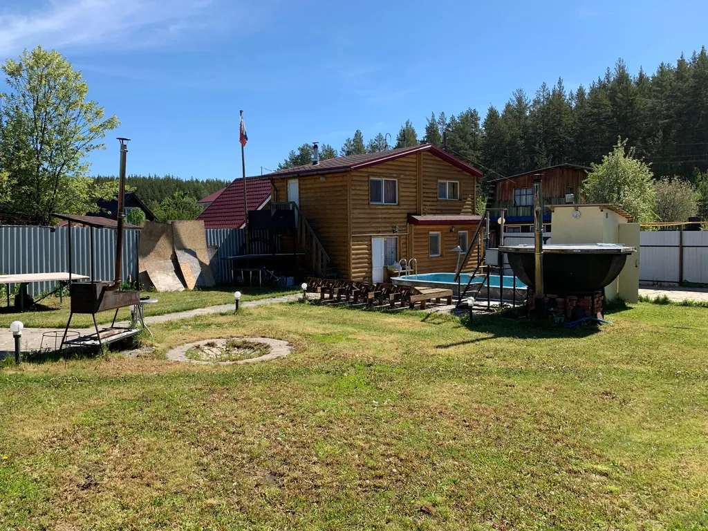 В конце ул. Ленина, СНТ «Урал-3», дом 44 (10 спальных мест). Расположен у леса.